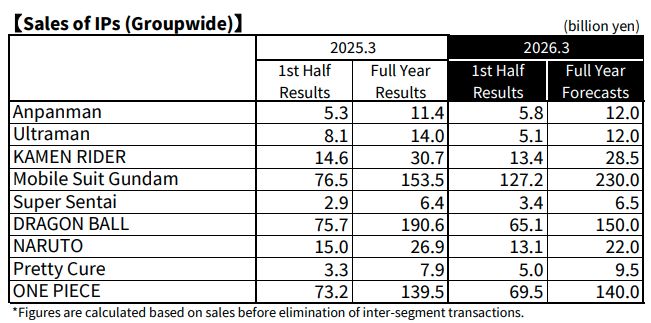 Le 6 novembre 2025, Bandai Namco a publié ses résultats fiscaux pour le 2ème trimestre de l’année 2026 concernant la période de juillet 2025 à septembre 2025. De manière générale, l’entreprise se porte très bien, bien aidée par Dragon Ball, One Piece et Gundam, et ses profits et chiffres d’affaires sont en hausse.