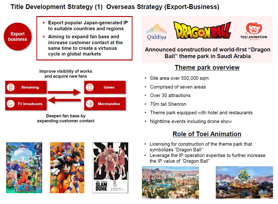 Concernant spécifiquement Dragon Ball, elle s’attend aussi à un regain de ventes de propriété intellectuelle avec le parc à thème « Dragon Ball » en Arabie Saoudite.