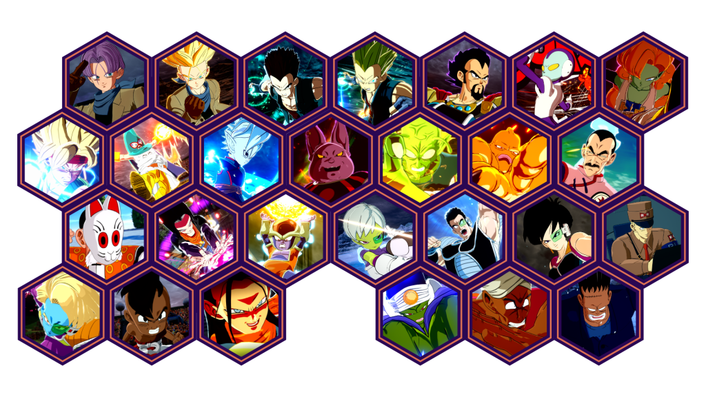 Grand Père Son Gohan, Tao Pai Pai, Roi Démon Piccolo, Bardock Super Saiyan, Zangya, Paikûhan, C17 de l’enfer, Super C17, Champa, Nam, C8, General Blue, Toma, Selipa, Chilled, Sauzer, Mighty Mask, Kaioshin, Uub (enfant), Roi Vegeta, Cheelai, Jaco, Vegeta (GT), Vegeta (GT) Super Saiyan, Trunks (GT), Trunks (GT) Super Saiyan, Nuova Shenron (GT)…