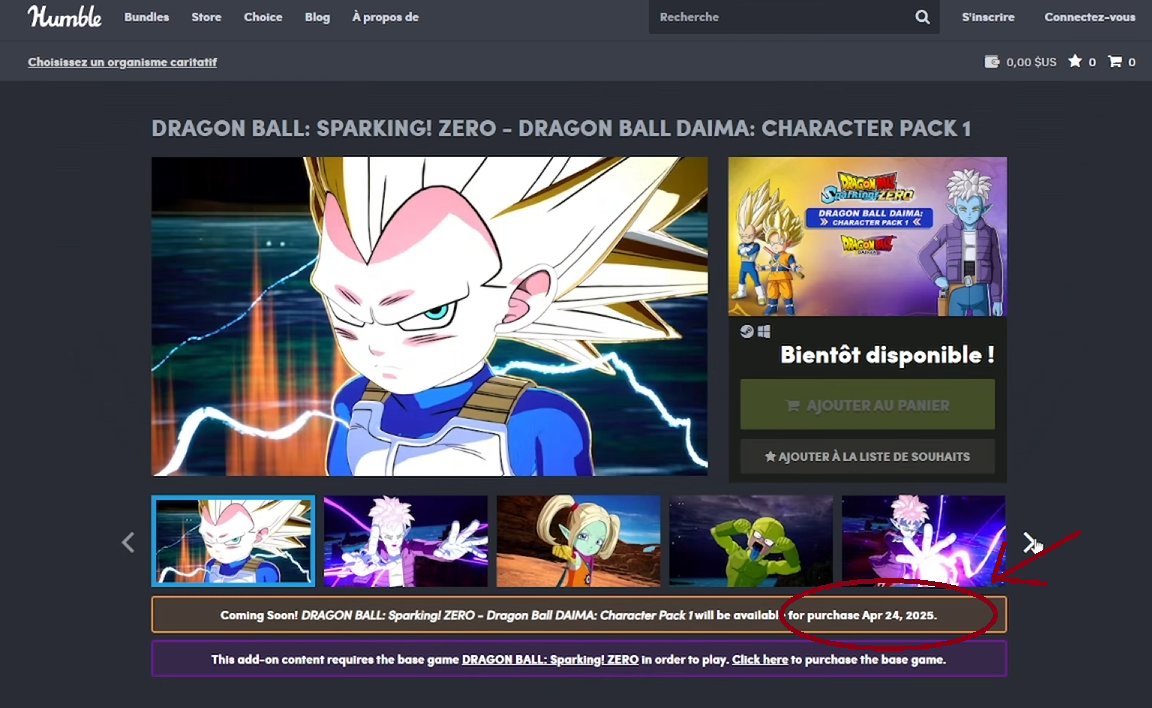 En publiant de nouvelles informations en avance, le site humblebundle.com a révélé le contenu du DLC 2 de Dragon Ball Sparking ZERO. Ce second DLC intitulé « Character Pack 1 » devrait sortir le 24 avril 2025, incluant huit nouveaux personnages jouables issus de la série animée Dragon Ball DAIMA. Les joueurs pourront donc jouer Goku (mini) Super Saiyan, quatre versions de Vegeta (mini), de sa forme de base au Super Saiyan 3, Glorio, Panzy et Majin Kuu. De plus, une tenue spéciale sera disponible pour Goku (mini), qui aura pour effet de changer ses techniques. Voici donc ci-dessous les nouveaux personnages du DLC en images.
