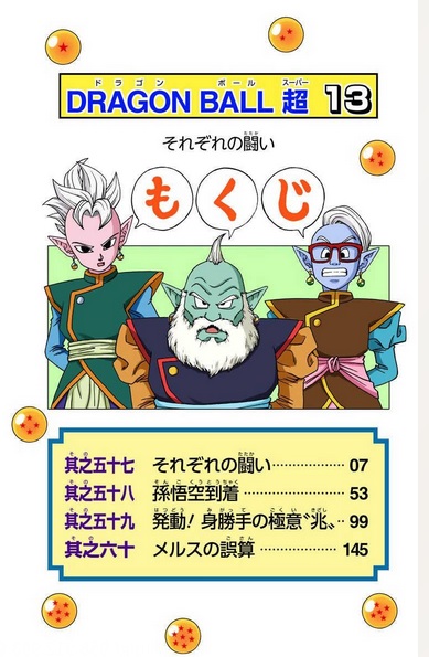 Ce treizième volume intitulé “Combats Divers” inclut les chapitres 57 à 60 de l’histoire pour 192 pages de contenu, correspondant aux combats sur Terre des guerriers Z contre Moro et ses hommes. Comme les premiers volumes, le tome 13 “Digital Colored” est vendu au prix de 570 yen (4,51€) sur de nombreuses boutiques en ligne japonaises. Les 30 premières pages du volume sont disponibles en lecture gratuite sur le site de la Shueisha S-Manga.