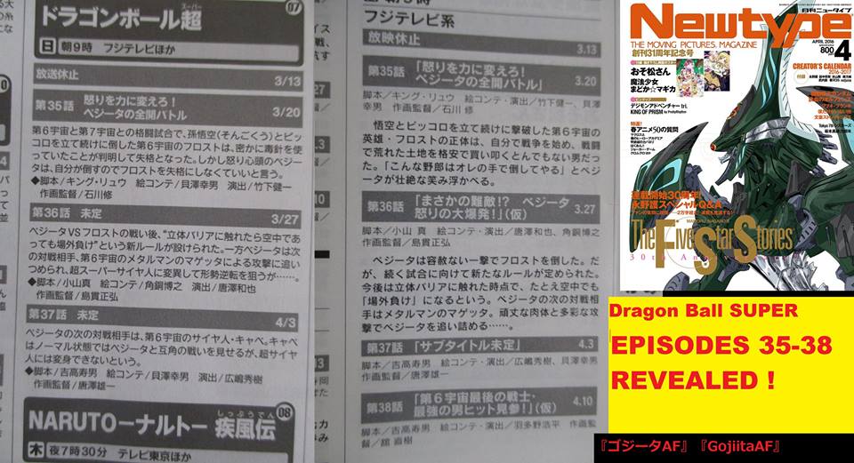 Gojiitaaf nous fait parvenir, scans à l’appui cette fois, les titres et résumés des futurs épisodes de Dragon Ball Super jusqu’au 38. Ces titres ne sont pas définitifs et peuvent être amenés à changer par la suite, mais nous donnent déjà une idée de ce qui nous attends. Notre cher Matthanor les a traduis pour vous.