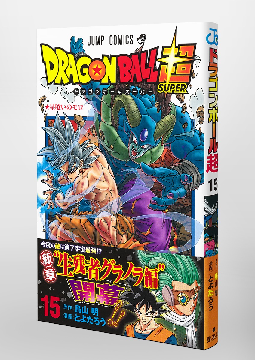 Le tome 15 de Dragon Ball Super inclut les chapitres 65 à 68 de l’histoire pour 192 pages de contenu, avec la conclusion de l’arc du Prisonnier de la Patrouille Galactique et le début de l’arc du Survivant Granola avec ses deux premiers chapitres. Les 30 premières pages sont disponibles en lecture gratuite sur le site S-Manga. La couverture toujours signée Toyotaro montre Goku Ultra Instinct contre Moro dans sa forme finale. Le volume s’intitule “Moro le dévoreur de planètes“, qui est aussi le titre du chapitre 66.