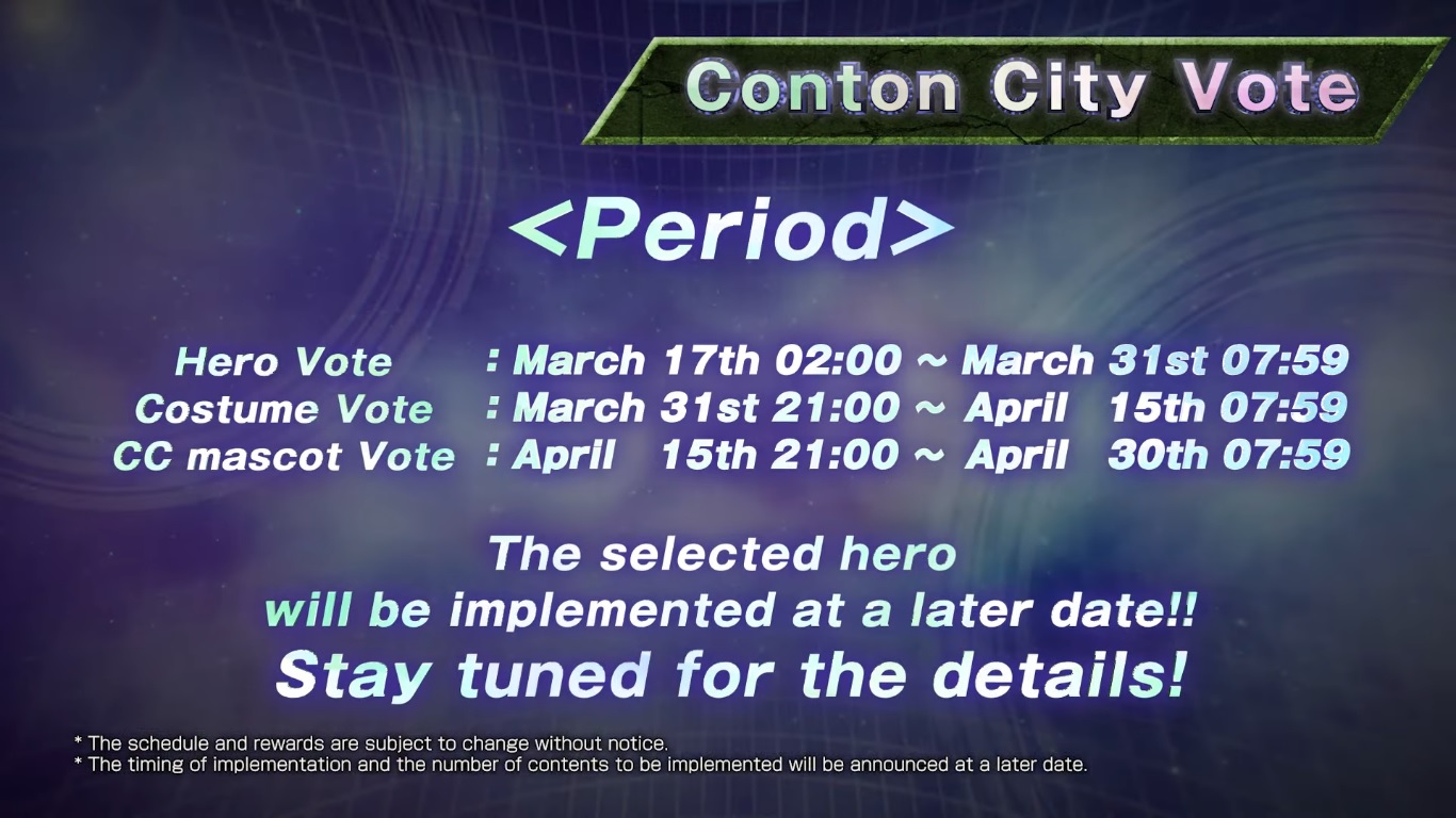 - Hero Vote: 17 Mars (2h00) au 31 Mars (7h59)