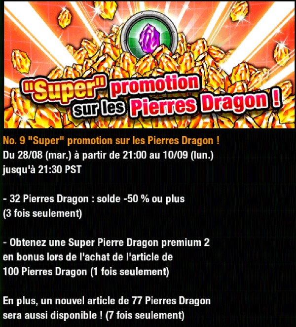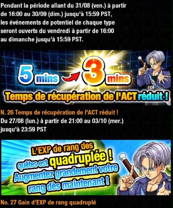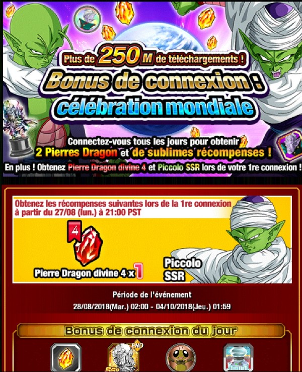 La campagne des 250 millions de téléchargements vient de débuter et avec elle, un – gros – lot d’événements et de cadeaux / bonus en tout genre ! Tous les détails, c’est ici dans Dragon Ball Z Dokkan Battle : Campagne des 250 millions de téléchargements !
