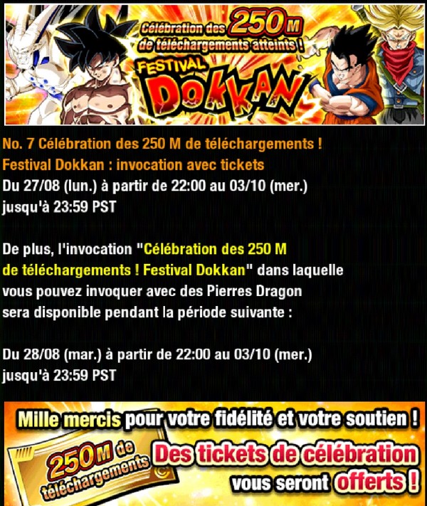 Dragon Ball Z Dokkan Battle : Campagne des 250 millions de téléchargements