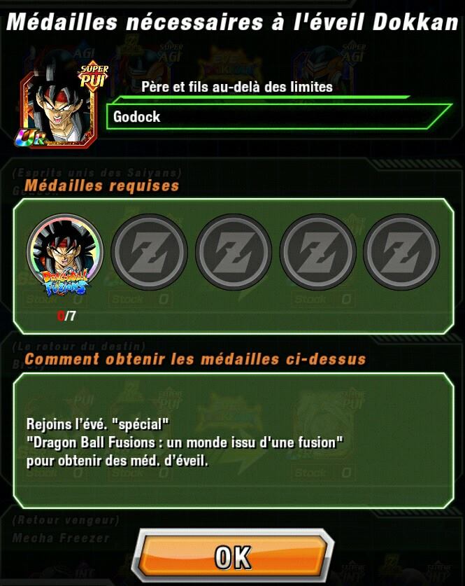 Retrouvez l’univers du jeu nintendo 3DS Dragon Ball Fusions dans cet event histoire crossover avec Dragon Ball Z Dokkan Battle. Venez gagner les médailles d’éveil pour Godock, Pandel, Brapan, et Goly dans cet événement : Dragon Ball Z Dokkan Battle : Dragon Ball Fusions – Un Monde issu d’une Fusion ! Un niveau est disponible :