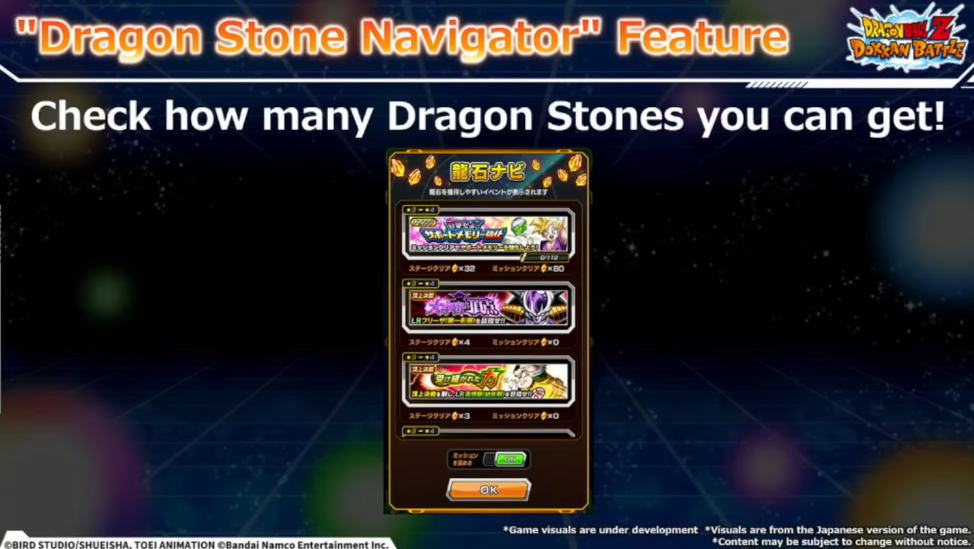 Le live de célébration a également dévoilé quelques nouveautés à venir prochainement dans Dokkan Battle. Parmi elles, un « Navigateur Pierre Dragon » aidera les joueurs à trouver les Pierres Dragon en leur recommandant des événements précis. Aussi, le Rang Maximum des joueurs dont la limite était de 999 va passer à 2000.