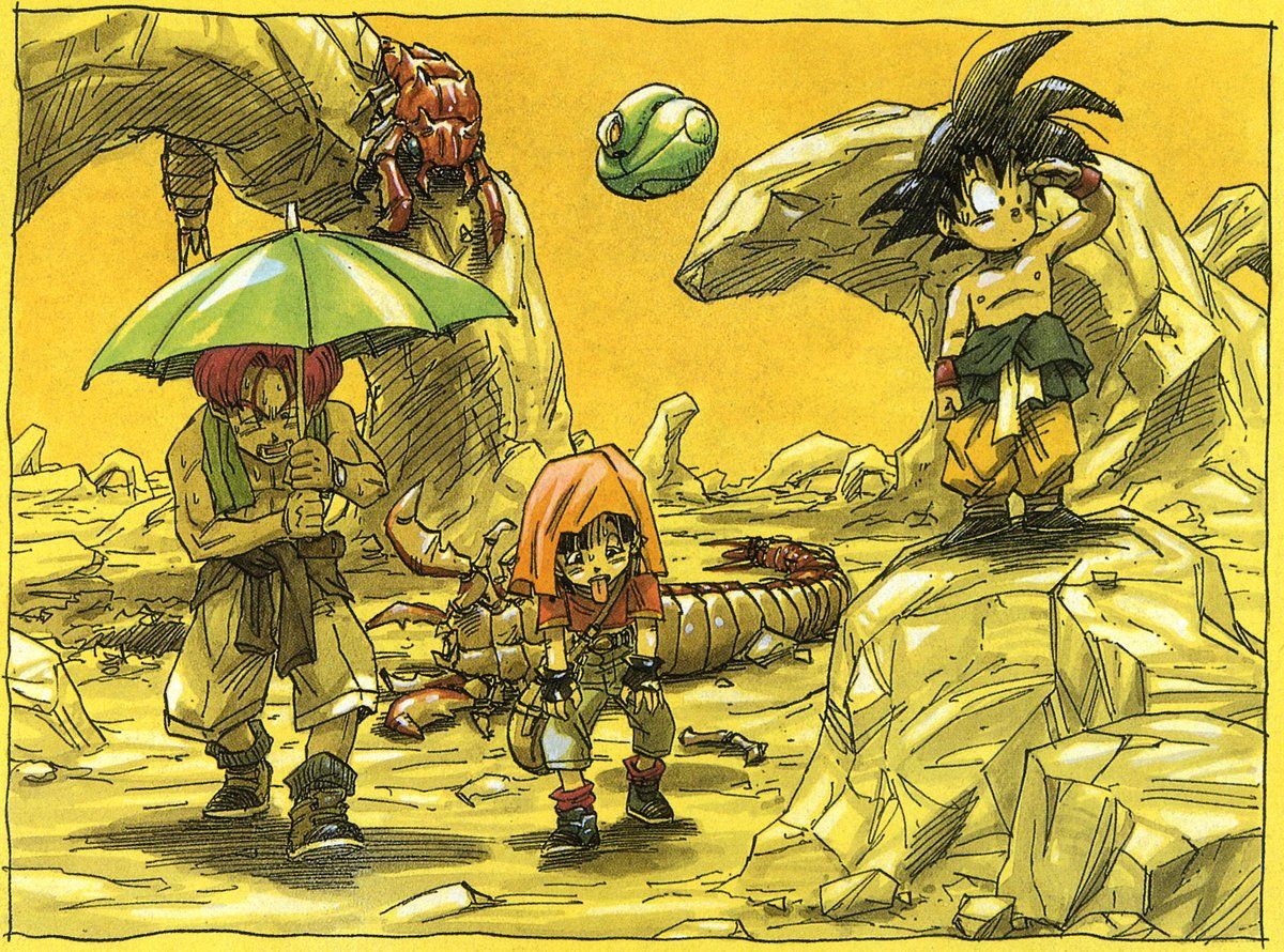 Deux de ces images ont été imprimées pour le numéro 52 du Weekly Shonen Jump de 1995, et ont été incluses plus tard dans le 7ème Daizenshuu et le premier des deux tomes Dragon Ball GT Perfect Files. La première image montre la bande composée de Gokû, Trunks et Pan sur la planète « Mommath », se cachant derrière une bouteille de verre géante tandis que les géants fouillent leur vaisseau. La planète Mommath et les géants apparaissent dans l’épisode 6 de DB GT. L’image suivante les montre sur une planète déserte nommée « Kahra ». Cette image ressemble fortement à la planète Ruhdeze vue dans DB GT épisode 16.