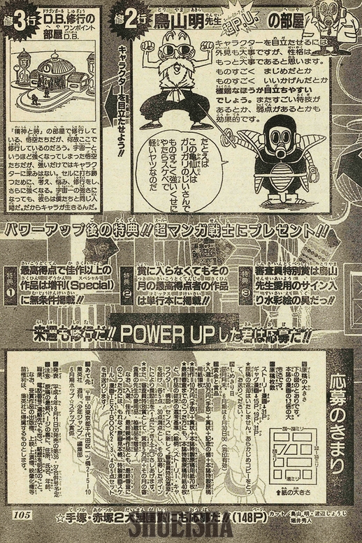 Akira Toriyama a fait partie du jury du prix Hop☆Step (ホップ☆ステップ賞), un concours mensuel destiné à recruter de nouveaux mangakas ! S’appuyant sur une nouvelle illustration de Kamesennin , il a donné des conseils pour donner du caractère à un personnage. Même son propre avatar, entièrement vêtu d’une armure de combat Saiyan, illustre parfaitement ce qu’est une illustration qui a du caractère.