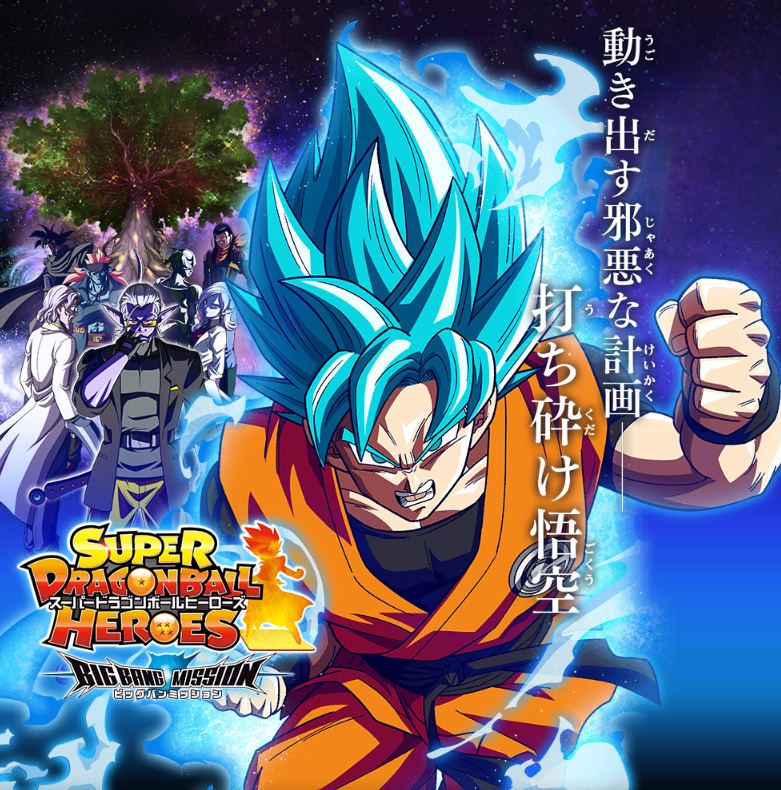 « Super Dragon Ball Heroes » est un jeu d’arcade se jouant avec des cartes, développé par Dimps et exclusif au Japon. Sorti en novembre 2010 sous le nom de Dragon Ball Heroes, le jeu a intégré une série d’arcs narratifs, chacun divisé en Missions inspirées des séries originales, des films et autres jeux vidéo Dragon Ball, avec l’ajout d’éléments de l’œuvre originale, ainsi que des transformations exclusives. Depuis novembre 2016, le jeu a évolué en « Super Dragon Ball Heroes », une mise à jour qui a totalement renouvelée le système de jeu ainsi que les bornes d’arcade elles-mêmes. Avec ça, la série a également vu arriver de nouveaux arcs narratifs. Le premier était celui du « Royaume Obscur des Démons », puis ont suivi ceux des Universe Mission et Big Bang Mission. Super Dragon Ball Heroes est également adapté en anime promotionnel depuis juillet 2018.
